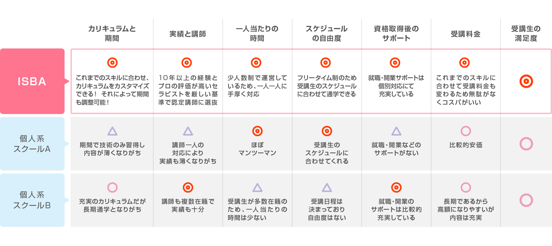 「指導」という形に留まらず、お一人お一人が描く夢の実現はもちろん、悩みも一緒に解決できるような、手厚いサポート体制を私達は目指しております。