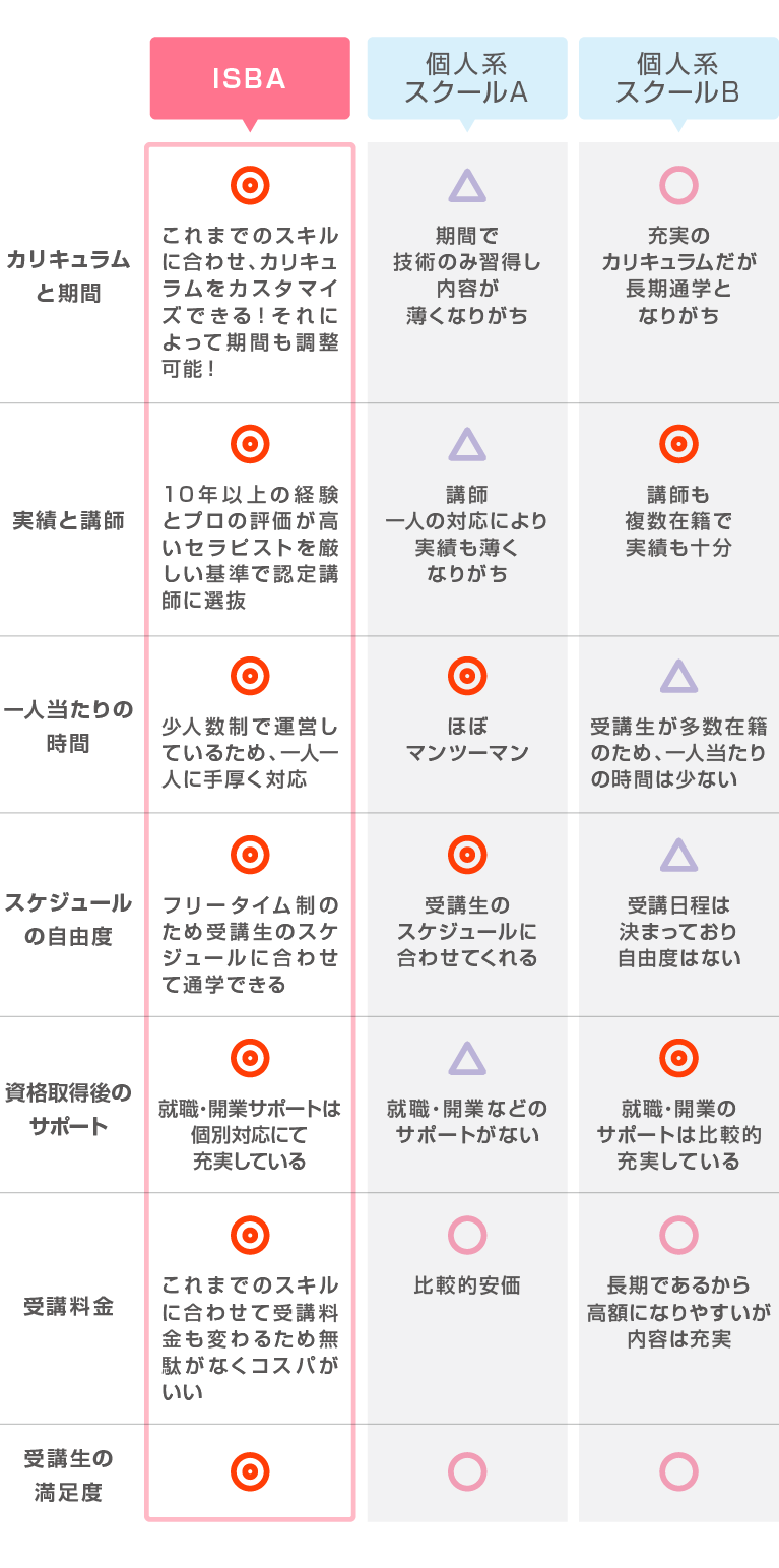医師、柔道整復師、美容師とサロン経験10年以上の講師が高いスキルでサポートしています。